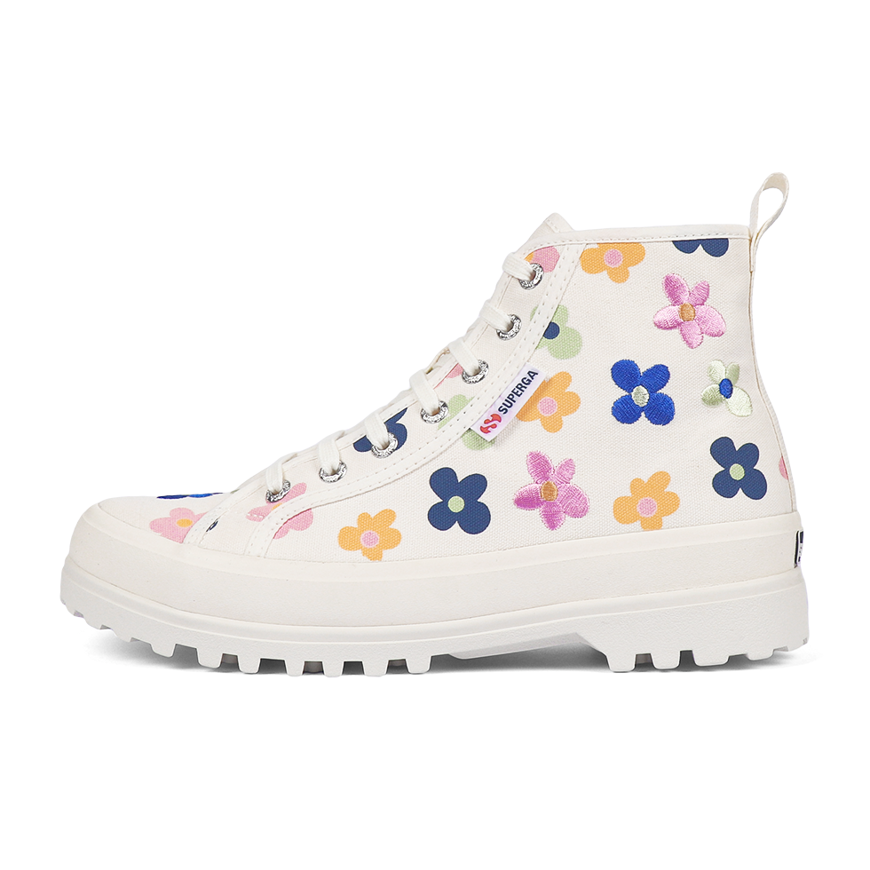 Upper in printed and embroidered thin cotton, lining in cotton and outsole in vulcanized natural rubber.