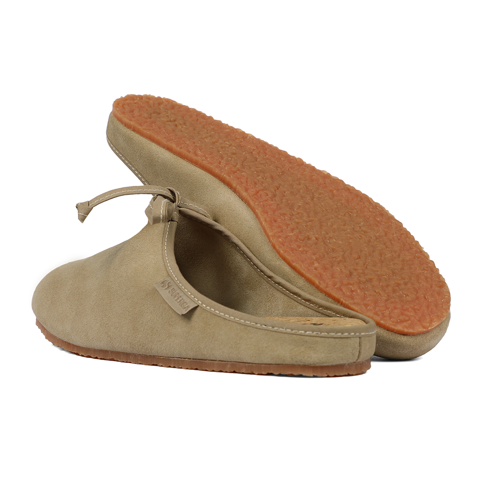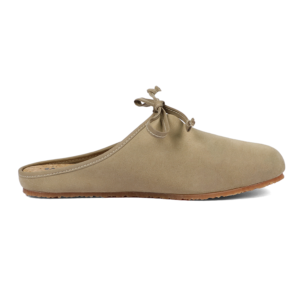 A symbol of effortless elegance, these ultraflat slippers are designed to complement easy-chic looks all year round. Crafted with a soft suede upper and lace closure, they feature an unlined interior, supportive cork insole, and a durable vulcanized natural rubber outsole for everyday comfort.