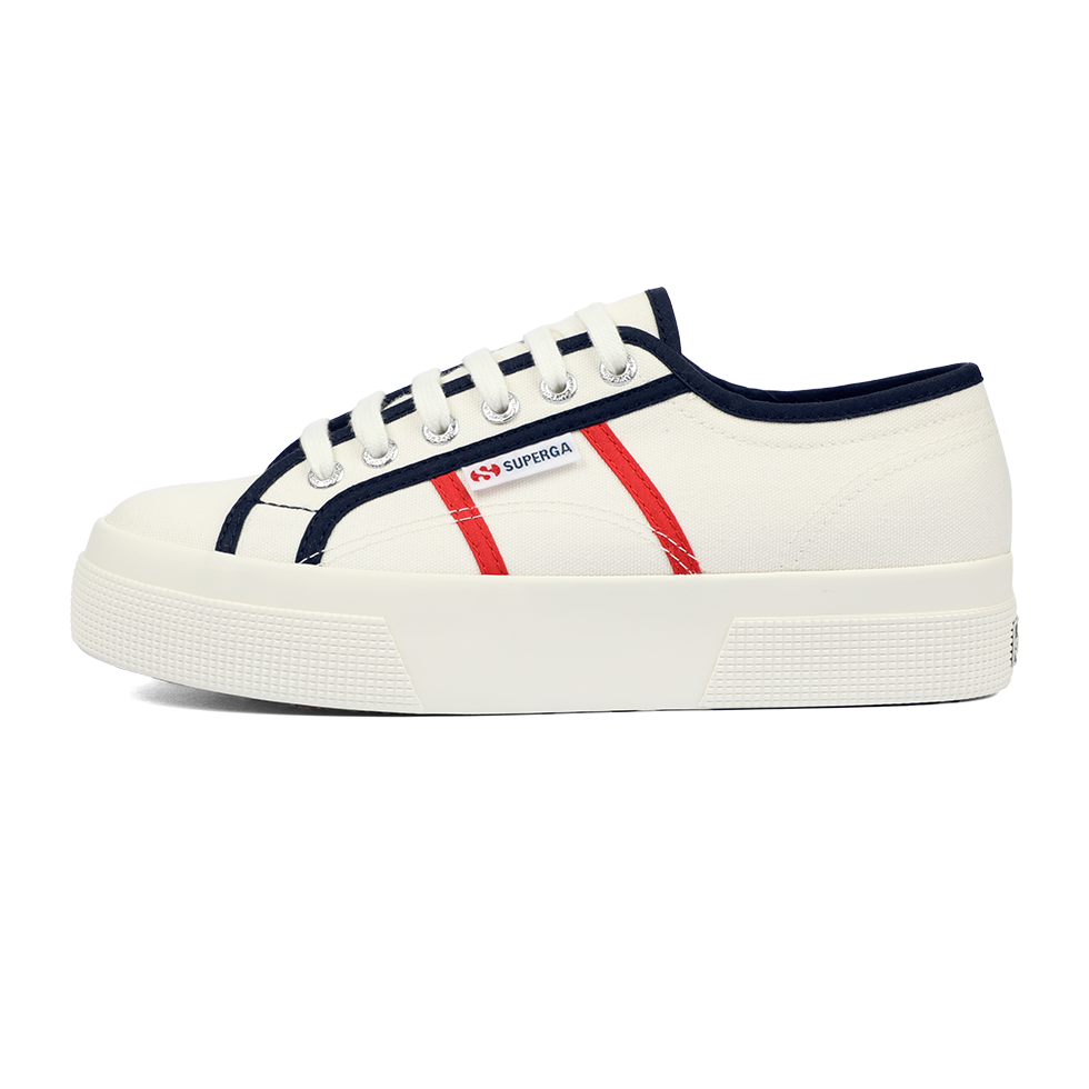Superga 2740 is the contemporary Platform that stays true to the design of our most iconic style. With its 3.5 centimetres sole and its dainty silhouette, this sneaker can elevate casual outfits and the most formal everyday looks as well. The canvas upper with binding in cotton in contrast colour and the two-tone jacquard logo confirm the stylistic codes of the brand.