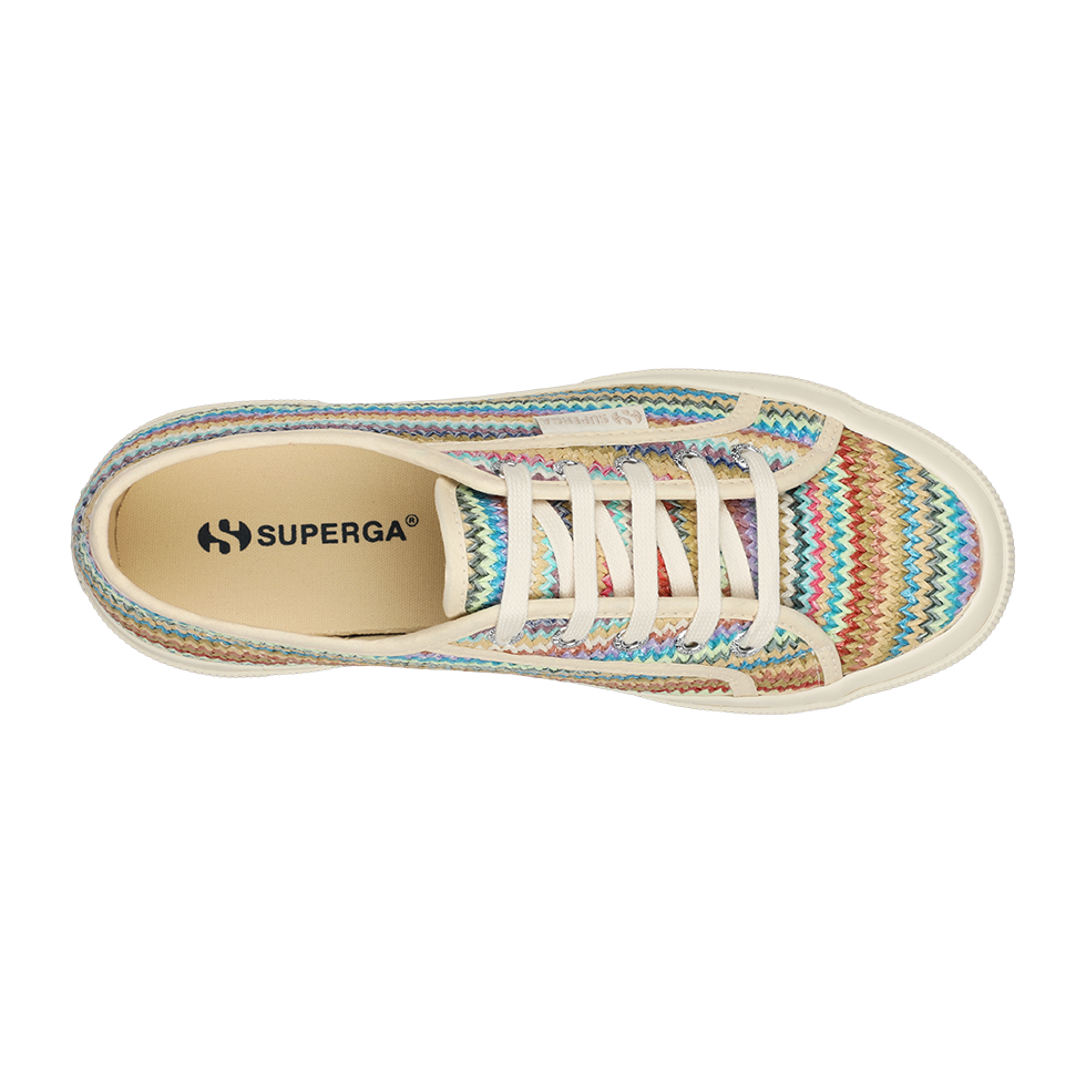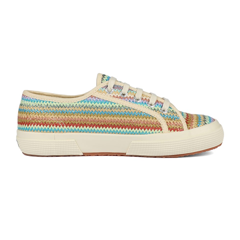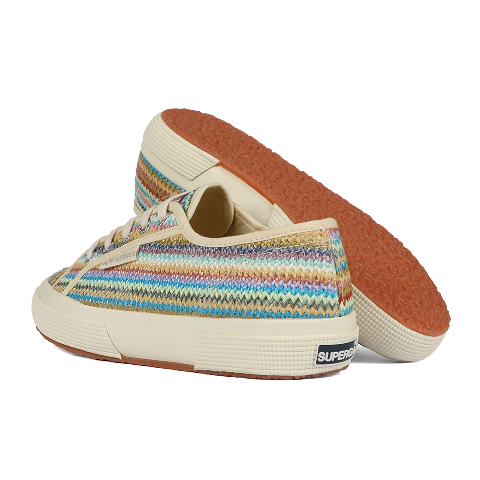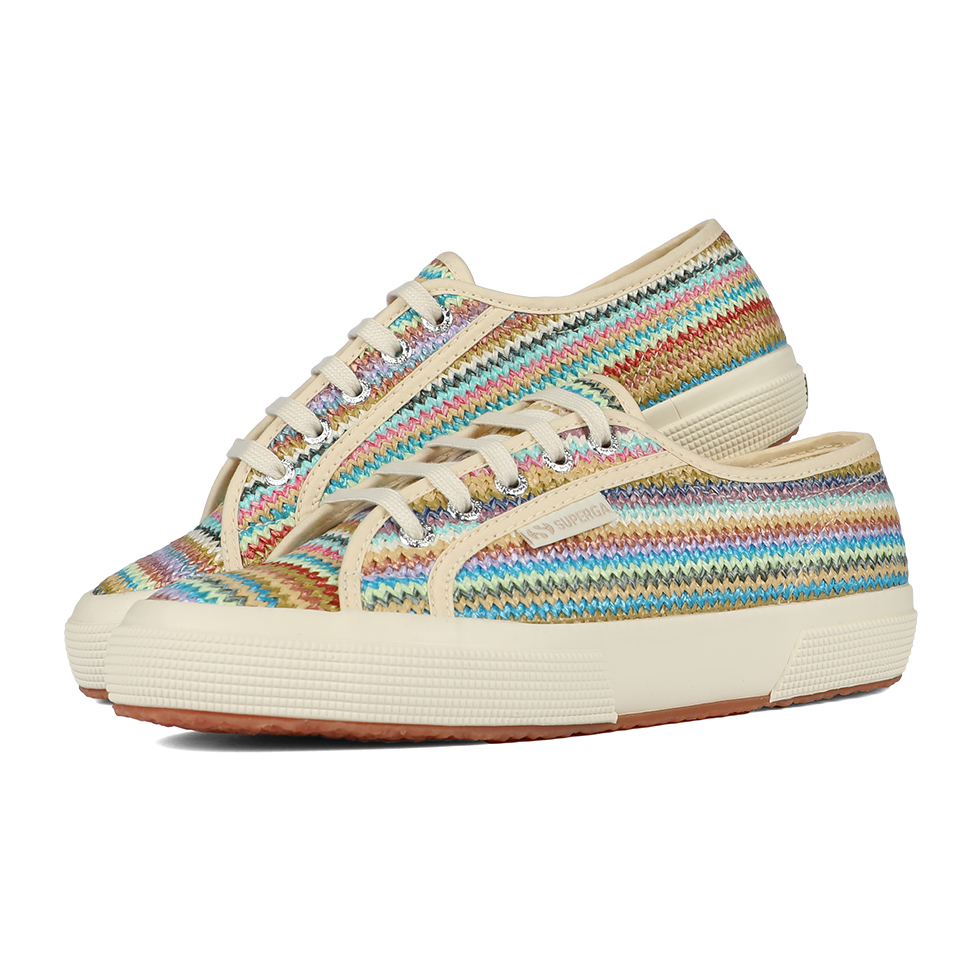 A fresh take on the iconic Superga 2750, the lace-up sneaker features a woven raffia upper and a boho-inspired palette that adds a refined, upbeat twist to summer looks. The vulcanized rubber sole and signature side jacquard logo label remain true to the brand’s timeless codes.