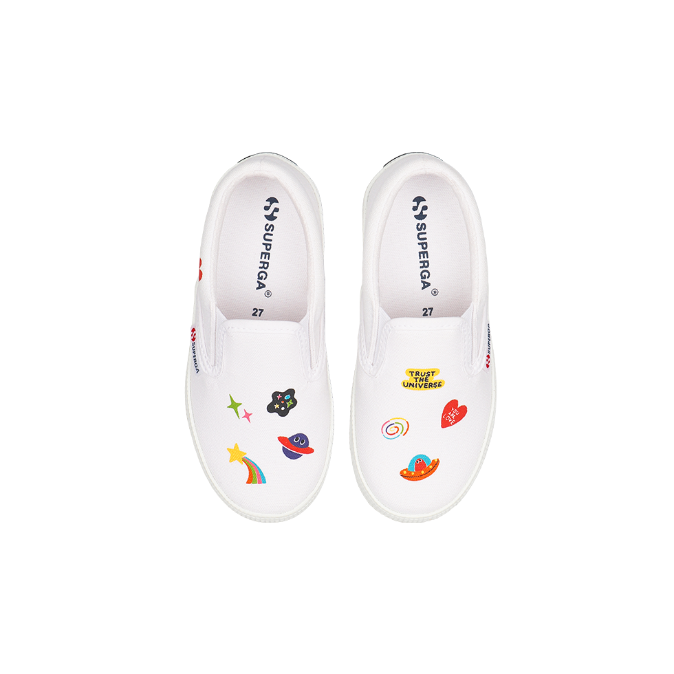 The collection includes two junior pairs, encouraging young minds to ignite their creativity. Both pairs take on the form of Superga 2350 Junior, a minimal slip-on silhouette that is lovingly made for busy hands (and feet) in mind.